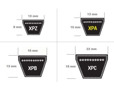 XPA belts are cogged wedge Metric V-Belts having 13 mm width and 10 mm height. Length is depending on the model. Ex: XPA1000 has a length of 1000 mm.